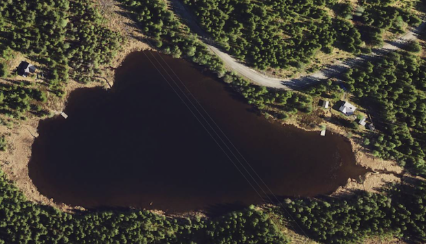 Flyfoto fra 2017 og 2021 viser hvordan Nedre Karlstjern ble påvirket av avrenning fra hogsten: